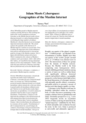ternet is an increasingly important instrument of daily life. This article explores the spatiality of the Internet in 41 Muslim-majority countries in several steps. First, it outlines the important roles of telecommunications policies and infrastructure in structuring patterns of usage in the Muslim ecumene. Next, it depicts the distribution and growth of users. Third, it summarizes the contours of Muslim ecommerce and e-government, which, while still in their infancy, are nonetheless having substantial impacts on lives and communities. Finally, it illustrates the types and levels of Internet censorship that are found unevenly across the Muslim realm." (Abstract)