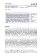 s to integrate such innovations into their normal operations. In light of this revolution, Christian leaders and organizations are compelled to consider the capabilities that digital technology and the internet have to offer for ministry practices. Such a revolution challenges the traditional norms and practices of Christian churches and causes them to consider the biblical and theological implications of relatively new means for carrying out ministry. There are biblical, theological, theoretical, and leadership implications to embracing digital church as a biblical community. Christian leaders should examine the biblical and theological implications of digital church as a biblical community and be utilized to augment local church ministry." (Abstract)
