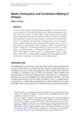 its aspirations remain unrealized. This article explores how the EPRDF sought to use the media to explain and encourage acceptance of the constitution. It offers a framework for analysis that is relevant for countries beyond Ethiopia by examining: the role of media policies in providing domestic and international legitimacy for constitutions; the ways in which media can provide a space for non-violent political conflict or negotiation, where elites can navigate political struggles and debate ideology; and the use of media to implement the constitution’s most ambitious goals." (Abstract)
