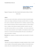 or the profession by African investigative journalists across Africa. Writing a history or complete account of African investigative journalism is outside the scope of this article. But I am trying to offer here a series of contributions – some current, some historical – on the topic of safety of journalists, that will, hopefully, lay the foundations for further research, and also lay to rest decisively the myth that journalism which exposes social problems and criticizes the powerful is ‘un-African’." (Abstract)