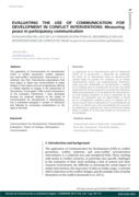 fering a credible baseline to engage in the assessment of this practice. In this paper, I offer a short compendium of the evaluation frameworks I have developed through my empirical research on the impact of Communication for Development in Peacebuilding; this is presented alongside a number of reflections and followed by concluding considerations on the state of the field." (Abstract)
