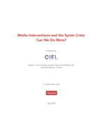 "[This publication] seeks to create a deeper understanding of the role of media interventions as strategic drivers of impact on the ongoing Syrian crisis. In exploring the impact of media interventions in this context, we conducted a landscape scan and a review of programs and approaches conducted b