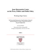 "This paper will examine American efforts to create a vibrant free press in Iraq and Afghanistan. A $200 million project in Iraq was the largest attempt ever by the United States, or any country, to help create independent media in another nation. Run by the Pentagon, it was a near total failure in