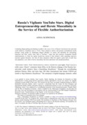 ntertaining, humorous and often violent video clips to YouTube. I argue that their practices encapsulate flexible authoritarianism, in which the regime incentivises citizens to take initiative while expanding repressive measures against dissenters. Not only do these enterprises reflect the regime’s goals back at itself, they also popularise a new ideal of heroic masculinity that fuses patriotism with entrepreneurialism." (Abstract)