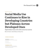 nced economies are more likely to have mobile phones – smartphones in particular – and are more likely to use the internet and social media than people in emerging economies. For example, a median of 76% across 18 advanced economies surveyed have smartphones, compared with a median of only 45% in emerging economies. Smartphone ownership can vary widely by country, even across advanced economies. While around nine-in-ten or more South Koreans, Israelis and Dutch people own smartphones, ownership rates are closer to six-in-ten in other developed nations like Poland, Russia and Greece. In emerging economies, too, smartphone ownership rates vary substantially, from highs of 60% in South Africa and Brazil to just around four-in-ten in Indonesia, Kenya and Nigeria. Among the surveyed countries, ownership is lowest in India, where only 24% report having a smartphone." (Pages 39-40)