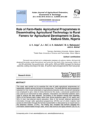 "The finding of the research reveals that majorities (90%) of the farmers were males, within their active productive ages (31-42 years) and 50% of them had attained Islamic education. Most of the farmers obtained agricultural information through radio agricultural programmes (97.8%) out of which maj