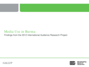s the primary medium to which Burmese turn for news. Currently, 62.8% of Burmese say they listened to a radio program in the past week. The results indicate past-week FM listenership continues to rise -- and suggest that AM listeners have migrated heavily toward new options on the FM spectrum. In 2012, just 18.3% of Burmese say they used a MW/AM band to listen to the radio in the past week. However, shortwave radio use remained steady in 2012, continuing to garner a strong weekly audience at 34% of all Burmese. Television is the secondary source, with almost half (44.7%) tuning in for news at least weekly. Overall, 56.8% of Burmese have a working television in their household, with TV ownership far more concentrated in urban areas (82.9%) than small towns and rural areas (45.7%). Just under half of Burmese overall (45.2%) say they watched television in the last seven days, again with a stark difference between those living in urban areas (68.9%) and those in small towns and rural areas (35.1%)." (Page 1)