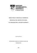 olitical independence. In general, small emerging democracies lack an environment that can enable a culture of independent media. This study selected two Eastern European countries–Slovenia and Macedonia, with a population of about 2 million each, and two Asian countries–Bhutan and Timor-Leste, with populations of around 740,000 and 1.2 million respectively. They all emerged in the “Third Wave” of democratization and were characterized by features of underdeveloped political institutions, insufficient public discourse, and financial vulnerability according to the previous scholarly work. Based on literature review, the researcher found that smallness, along with confounding factors of national identity and economic context, shapes the way media policy is envisioned and developed [...] Using a mixed methodology of interview and documentary research, the researcher found that the reaction of small emerging democracies to the sudden social and political changes tended to have patterns, although they differed in the paths to democratization. Furthermore, the role of media as a watchdog is undermined by the financial dependence on the government of the day. With respect to media governance, the four countries are all marked by the hierarchical mode of governing. This casts light on the fact that media policy should be constructed with input from private sectors and civil societies. A conceptual framework provided by this study can work as an analytical tool for researchers who are interested in studying similar-sized countries." (Abstract)