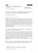 los medios de comunicación indígenas y afroamericanos en América Latina. A partir de los conceptos de multivocalidad y multimodalidad repensamos y experimentamos con la metodología y la escritura etnográficas. Ambos conceptos tienen la potencialidad de incorporar las nociones de diferencia y jerarquía vinculadas a la idea de una pluralidad en permanente interacción. Efectivamente, el principal reto del proyecto y de la web MEDIOS INDÍGENAS es aprehender las diferencias y la heterogeneidad características de la comunicación indígena y afroamericana sin diluirlas en el momento de la escritura y la interpretación etnográficas." (Resumen)