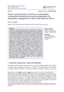 "This article is mainly aimed toward those responsible for communications in ecclesial organizations that are experiencing vulnerability. It integrates the perspective of organizational communication with ecclesiological contributions. The first part notes that vulnerability is a common trait of civ