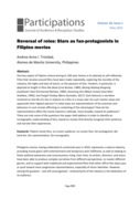 films like Bona (Lino Brocka, 1980), Bituing Walang Ningning [Lackluster Star] (Emmanuel Borlaza, 1985), Konorang Itim [Black Crown] (Jose Mari Avellana, 1994), and Fangirl Fanboy (Barry Gonzalez, 2017). Each features a narrative centered on the life of a fan in relation to a film or a music idol. Do such movies value and appreciate their highest patrons? In what ways are representations of fan practices and behaviors in such movies affirming or contesting of fan stereotypes? How do fan representations affect the movie industry’s attitude, more broadly, toward its audiences? These are only some of the questions the paper shall address in order to identify an iconographic understanding of fans, based on movies that directly recognize their existence and narrate their experiences." (Absract)