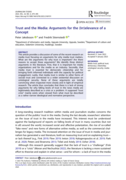 is important for media organizations and for the media as an industry. Secondly, that media trust is essential for democratic citizenship and for bringing forth informed individuals with the capacity for political engagement. Lastly, that media trust is similar to other forms of (social) trust and connected to a wider existential discussion on ontological security. None of these arguments are totally convincing when inspected more closely and in light of empirical research. The article thus concludes that there is a lack of strong arguments for why falling levels of trust in the news media are legitimately described as a crisis or a problem. A supposed “trust crisis” mainly exists when viewed from what must be described as a rather narrow ideological and normative perspective." (Abstract)