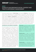 "Building trust in public health authorities and epidemic response takes time and is an ongoing process. However, in the short term, mistrust can be mitigated by responding in contextually appropriate ways through meaningful community engagement: 1. Use social science to understand the socio-economi