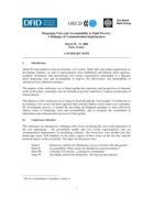 ening voice and accountability to improve the effectiveness and sustainability of national poverty reduction strategies. … The objective of the conference was to begin to break through the "iron triangle" of technocrats in government, civil society and donor agencies that currently defines, and in many ways constrains, the development process; to amend the prevailing development paradigm to more effectively address issues of deepening voice and accountability; and to recognize the contribution of information and communication processes to that agenda." (Introduction, page 2)