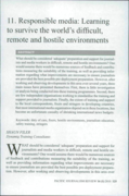 de la profesión, de no quedarse de brazos cruzados como víctimas indefensas. Este informe no es un pantallazo de todo el trabajo que se está llevando a cabo en este campo. No está lleno de estadísticas ni datos. En cambio, es una colección de historias, contadas con las palabras de la gente motivada que se dedica a proteger a los valerosos periodistas tomando medidas para que su profesión sea más segura." (Introducción, página 9)
