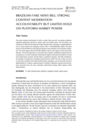 and messaging services. After a multistakeholder debate, the latest version of the bill before the 2022 general elections was presented in the Chamber of Deputies. This article argues that the bill takes different stances with regard to those three basic elements. The bill strongly draws on the dimension of speech, establishing requirements for transparency in content moderation following the highest international standards. On data and market power, however, the bill makes no significant progress, with little contribution, for example, to tackling the surveillance-based business model. This way, it does not touch on structural conditions that shape disinformation campaigns, such as the profit motive of digital platforms. It follows a general pattern of platform regulation, leaving structural features untouched and, this way, eventually undermining stronger efforts against online disinformation." (Abstract)