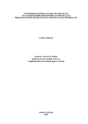 ireta ou indireta das 54 redes de rádio e televisão controladas pelos por esses conglomerados atinge mais de 25% dos 9.477 veículos de comunicação identificados pelo projeto. Algumas destas organizações encabeçam um sistema marcado por cinco condicionantes: tripla concentração econômica (diagonal, vertical e horizontal), controle das redes de distribuição, penetração regional, presença histórica e relações políticas. Ao mesmo tempo, suas empresas atuam simultaneamente em quatro dimensões: econômica, política, histórica e simbólica. Quando reunidas, as duas características configuram um modelo a que se propõe chamar de Sistema Central de Mídia. Esta dissertação permitiu a identificação de dez conglomerados que ocupam tal posição. Eles controlam, direta ou indiretamente, 12 redes de televisão, 9 de rádio e 1.310 veículos de comunicação, 14% da base identificada pela pesquisa. Conhecer a forma de organização que permite às empresas de mídia conquistar e manter posições no mercado nacional parece interessar especialmente no momento em que a convergência tecnológica vem reduzindo as distâncias entre os agentes da área das comunicações do Brasil e do exterior." (Resumo)