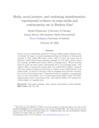 "Using a two-level randomized experiment covering 5 million people in Burkina Faso, we examine the impact on family planning knowledge and behavior of both general exposure to mass media (800 women receive radios in status quo areas) and an intensive evidence-based family planning campaign (8 of 16