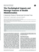 "What does health misinformation look like, and what is its impact? We conducted a systematic review of 45 articles containing 64 randomized controlled trials (RCTs; N = 37,552) on the impact of health misinformation on behaviors and their psychological antecedents. We applied a planetary health per