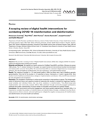 "We provide a scoping review of Digital Health Interventions (DHIs) that mitigate COVID-19 misinformation and disinformation seeding and spread. Materials and Methods: We applied our search protocol to PubMed, PsychINFO, and Web of Science to screen 1666 articles. The 17 articles included in this pa