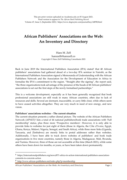 ciation for the Development of Education in Africa to formalise the IPA’s commitment to the region. “Straight after the signing”, the report said, “the three organizations took advantage of the presence of the heads of 40 African publishers’ associations to set out the first steps of the newly formalised partnerships.” This is a welcome development, especially as it has been generally recognized that book professional associations are still weak in many African countries, often due to lack of resources and skills. Several are dormant, inaccessible, or carry little clout, while others seem to have ceased activities altogether. They are very much in need of new energy, and new vision." (Abstract)