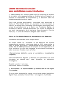 ncontrará la oferta de ‘The Knight Center for Journalism in the Americas’, el Instituto de Prensa de la Sociedad Interamericana de Prensa (SIP), cursos de periodismo.net y el Centro de Periodismo Digital, de Guadalajara, México. También encontrará una versión en español de una parte representativa de la oferta de ‘News University’ (Poynter Institute), un punto de referencia obligado sobre el tema." (Página 1)