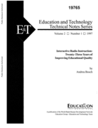 "Interactive Radio Instruction (IRI) is the use of interactive lessons delivered through either radio broadcast or audiocassette. An "audio" teacher directs the lessons while classroom teachers serve as facilitators. IRI has been used in developing countries worldwide to improve the quality of educa