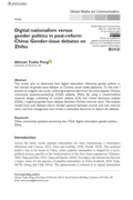 "This article aims to determine how digital nationalism influences gender politics in the context of gender-issue debates on Chinese social media platforms. To this end, I present an original case study, collecting empirical data from the most popular Chinese community question-answering (CQA) websi
