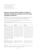 "Este artículo presenta los resultados finales de la aplicación de un análisis de contenido a un corpus noticioso sobre asesinatos de líderes sociales en Colombia para medir y analizar su calidad periodística de acuerdo a los postulados del Valor Agregado Periodístico (VAP). El estudio se cent