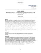 its reporters and editors. Additionally, this paper investigates staff views on the implementation of affirmative action in their workspace and this policy’s potential to impact on transformation. Observation, interviews and document analysis were used for data collection. This study finds that though The Durban Post’s staff has transformed to some extent, the majority of staff members interviewed feel that the paper has yet to achieve significant transformation of coverage, readership and power structure, due to societal and internal systemic factors." (Abstract)