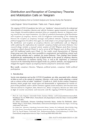 f conspiracy messages and political attitudes, conspiracy beliefs, or political engagement. To address these gaps, our study adopts a two-pronged approach, linking the distribution and reception of conspiracy theories and mobilization calls on Telegram while exploring the implications for recipients’ conspiracy beliefs and protest behavior. Our research design includes a manual content analysis of 3,162 Telegram posts from German conspiracy-related channels (Study 1), and a survey of 318 Telegram users in these channels and 320 traditional media users (Study 2). Our results reveal characteristics of Telegram fringe group users that make them susceptible to conspiratorial and mobilizing content, such as anti-system attitudes and a readiness for protest behavior. These findings have broader implications for understanding the role of digital media in the spread of conspiracy theories and the mobilization of resistance during crises, as well as the importance of continued research on the relationship between digital media use, political attitudes, and engagement to mitigate the negative impacts of conspiracy theories and preserve democratic values." (Abstract)
