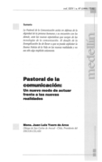 "El presente manual recoge, por un lado, lo que ya realizó en su momento Comunicación, misión y desafÃo,(1986) y lo que ofreció el manual de Comunicación para la pastoral y pastoral de la comunicación (1995), del Servicio Conjunto de Comunicación que agrupa las tres grandes organizaciones ca