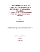 "This is a comparative case study of the church-run, Radio Maria and non church-run, Radio Explorers in the Eastern Province of Zambia. The work compares and contrasts the (1) content and management of the stations, (2) the process of selection of programmes and content development, and (3) accessib