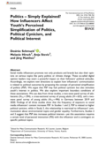 lain how influencers’ communication is related to political outcomes by proposing the concept of perceived simplification of politics (PSP). We argue that PSP may fuel political cynicism but also stimulate youth’s interest in politics. We also explore important boundary conditions of these associations. We use data from three studies, a two-wave panel survey of adolescents (NT2 =294), a cross-sectional survey of young adults (N=632), and a two-wave panel survey of young adults (NT2=496) in Germany between 2019 and 2020. Findings of all three studies show that the frequency of exposure to social media influencers’ content increases PSP. In Studies 1 and 2, PSP is related to higher political cynicism, while in Study 3, this relationship is restricted to influencers’ communication about environmental topics and gender equality. Furthermore, Studies 2 and 3 suggest that PSP also increases political interest—yet this association requires a certain level of parasocial interaction (PSI) with the influencer and is contingent on specific political topics." (Abstract)
