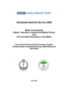 tudy total sample size is 1,368 young people aged 15-29 from six locations—Phnom Penh, Kandal, Kampong Speu, Kampong Chhnang, Battambang and Siem Reap. These provinces were selected for the sentinel surveys because they have the highest level of media consumers according to the CDHS 2005. Data was collected using face to face interviews in the Khmer language. Fieldwork was conducted in August 2008. The survey questionnaire, as in the 2007 Sentinel Study, covered a range of topics, of which this report includes: demographics; media practices; HIV and AIDS on radio and TV; exposure to the Trust’s HIV and AIDS outputs." (Executive summary, page 8)