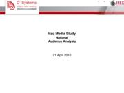 The IREX Audience Measurement Survey 2009 in Iraq was an ad hoc national quantitative research study on media usage, habits and attitudes of people over the age of 15, across Iraq, with a total sample size of 2,200 individuals. The total sample consists of a representative sample of 2,000 individual
