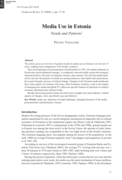 "The article gives an overview of general trends in media use in Estonia over the last 15 years, making some comparisons with Nordic countries. Since the beginning of postcommunist transformation in 1991, the media landscape in Estonia has faced substantial changes. A completely renewed media system
