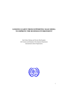 ehaviour through interventions applying for instance social marketing techniques. Second, it can provide enhanced services and information about MSE input and output markets by providing information on the services and products available to small businesses, acting as a feedback mechanism to service and input providers, and playing an important role in opening up new markets and improving existing markets for the services and products that small businesses sell. Third, mass media can act as an agent to improve the policy and regulatory environments for small businesses." (Abstract)