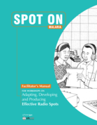 rtisements to respond to local needs. It offers tools to help navigate the production process. The guide also encourages collaboration with colleagues and local experts. It suggests that gathering a team to provide advice and share some of the work will make the products stronger. The Spot on Malaria guide takes the reader through a 7-step process for planning, adapting or creating, testing and producing radio spots. It also offers tips on: securing adequate and appropriate airtime; deciding whether to use free or paid airtime; monitoring and evaluating spots. The Spot on guide also includes: resources about malaria, radio and communication - many available free on the web; planning, research and implementation tools, including a sample pretesting guide and screener; more than 15 sample scripts on various malaria topics, including treatment, insecticide-treated nets and intermittent preventive treatment of pregnant women; a sample five-day agenda for conducting a Spot On training workshop; a glossary of malaria, radio, research and scriptwriting terms." (Communication Initiative)
