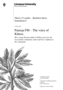 "In Kibera, the biggest slum area in Nairobi and in whole East Africa, the urban slum community radio station Pamoja FM only works for the citizens living within Kibera. We aimed to find out how the youth in Kibera perceive the efficacy of the radio station as a viable source of news and information