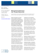 Press councils and ombudsmen should be adequately funded from a variety of sources (NGOs, media organizations, international donors) while safe-guarding their independence. 4. In the establishment of a press council, there must be an effective mechanism to avoid, or greatly reduce, the possibility that complainants will take advantage of defamation laws and take their issues to court rather than to the council. 5. To be effective, press councils and ombudsmen should focus on journalistic standards: ethical behavior (such as not accepting payment for stories), fairness, balance, and using appropriate and varied sources for information." (Summary of recommendations, page 7)