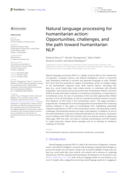 t multiple stages of the humanitarian response cycle. Both internal reports, secondary text data (e.g., social media data, news media articles, or interviews with affected individuals), and external-facing documents like Humanitarian Needs Overviews (HNOs) encode information relevant to monitoring, anticipating, or responding to humanitarian crises. Yet, lack of awareness of the concrete opportunities o..ered by state-of-the-art techniques, as well as constraints posed by resource scarcity, limit adoption of NLP tools in the humanitarian sector. This paper provides a pragmatically-minded primer to the emerging field of humanitarian NLP, reviewing existing initiatives in the space of humanitarian NLP, highlighting potentially impactful applications of NLP in the humanitarian sector, and describing criteria, challenges, and potential solutions for large-scale adoption. In addition, as one of the main bottlenecks is the lack of data and standards for this domain, we present recent initiatives (the DEEP and HumSet) which are directly aimed at addressing these gaps. With this work, we hope to motivate humanitarians and NLP experts to create long-term impact-driven synergies and to co-develop an ambitious roadmap for the field." (Abstract)