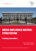 some US$ 7.6m in the media in 2018, more than 75% of which was accounted for by the state budget allocation for KTRK. On top of that, in a move aimed at gaining loyalty of media outlets, it is believed that the government is using state-owned companies, mainly banks and mining firms, or other public institutions, to fund more media. The value of these contributions is not publicly available. According to our calculations, and interviews with experts and journalists carried out for this report, we estimate the value of government funding in the media to be upwards of US$ 10m, which is equivalent to roughly half the value of the advertising market in Kyrgyzstan. Such an overly dominant position of the government in the media harms the country’s journalism in many ways. First, most of the media that relies on government cash is biased in its reporting. KTRK, one of the most influential broadcasters in Kyrgyzstan thanks partly to its nationwide coverage, is a devoted promoter of state policies and rarely provides alternative points of view. More than a third of KTRK’s airtime is filled with state propaganda, recent studies showed. Second, the government’s intervention in the media has a distorting effect on the market, discouraging investments and stymieing innovation and experimentation. Besides government funding, a major source of revenue for the media is the informal financing, comprising ad hoc contributions made by people or companies to media outlets as a way to buy their allegiance [...] Philanthropy remains the sole source of support for independent media. However, its contribution is a pittance compared to the other sources of media funding. The philanthropy funding in the Kyrgyz media during the past decade, some US$ 6.1m, is less than two-thirds of the state spending in one year alone." (Page 4)