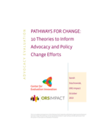 "This brief lays out 10 theories grounded in diverse disciplines and worldviews that have relevance to the world of advocacy and policy change. These theories can help to untangle beliefs and assumptions about the inner workings of the policy making process and identify causal connections supported