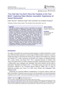 tructures and generative mechanisms that explain their vulnerability to online abuse. We identify three overarching themes: increasing visibility in a context of higher hostility towards journalism and insufficient safety mechanisms; intersectional gender inequality and cultural mores that foster it; and (individual) responses to harassment. These themes show that women journalists’ actions are both constrained and enabled by existing structures and cultural attitudes. While they tend to deny harassment is caused by their gender, seeing it mainly because of their job, they admit the sexualised and gendered nature of the insults, seeing this as an added offence not experienced by their male counterparts. They also see harassment as a continuation of inequality and prevailing sexism and find the protection mechanisms insufficient and ineffective. As a result, they assume an extra burden of emotional labour to deal with online bullying, admitting self-censoring and the need to develop resilience strategies." (Abstract)