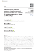 th women and queer journalists and activists in Lebanon to illustrate their experiences of infrastructural platform violence on WhatsApp. Specifically, we distinguish between identity-based violence propagated on platforms, and violence propagated by platforms due to infrastructural neglect of vulnerable populations. Our results document how perpetrators employ the affordances of WhatsApp in harmful ways. We highlight the individual emotional and reputational toll of doxxing and harassment campaigns. The study also showcases the societal ramifications of silencing and self-censorship, as well as infrastructural platform failures. Findings underscore the need to shift attention in platform studies toward populations and geographies whose safety has systemically been neglected by technology companies." (Abstract)