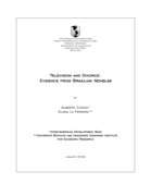 1991) and controlling for area fixed effects and for time-varying characteristics, the paper finds that the share of women who are separated or divorced increases significantly after the Globo signal becomes available. The effect is robust to controlling for potential determinants of Globo’s entry strategy and is stronger for relatively smaller areas, where the signal reaches a higher fraction of the population." (Abstract)