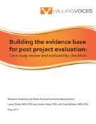 e of the methodological issues that are unique to post project (as opposed to end of project) evaluation, and point to the advantages of planning for sustainability measurement from the outset of the project. In the majority of cases, the sampling approach adopted at the endline proved challenging to replicate post project because it was not designed to measure sustainability, or because of access to or demographic changes in the beneficiary population. Finding suitable projects for this review was difficult because so few post project evaluations are done, fewer are publically available, fewer still had comparable final evaluations and included local voices. Agencies that fund post project evaluations offer a range of reasons for doing so: to learn, to promote a success, to inform replication or scale, to provide justification for future funding, to promote accountabilities. What is less explicit is how findings are used within implementing and donor agencies, shared with partners, and influence future programming. As part of this report, Valuing Voices offers an evaluability checklist for doing a post project evaluation from the onset of the project, and a checklist for measuring sustainability through the entire project cycle." (Abstract)