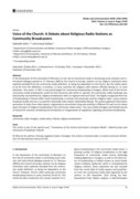 too dependent on the Church. But the reality seems to be far from this definition. In practice, in many countries the religious radio stations officially belong to—or even dominate—this sector. In 2011 a new period began for community broadcasting in Hungary. While most of the former community media broadcasters could not find resources with which to operate, the community media landscape was dramatically overwhelmed by religious broadcasters both on regional and local levels. The legally-recognised third tier of broadcasting in Poland called ‘social broadcasting’ is actively and exclusively used by religious radio—seven stations broadcast locally and one is a powerful nationwide radio station called Radio Maryja. The authors gathered information and points of views from radio experts, organizations and activists living and working in different EU and non-EU states about the place of religious broadcasting in the community media sector. Two case-studies (Hungary and Poland) may be of interest for countries considering the introduction or reorganisation of regulations regarding community broadcasting." (Abstract)