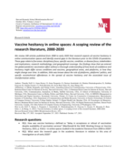"We review 100 articles published from 2000 to early 2020 that research aspects of vaccine hesitancy in online communication spaces and identify several gaps in the literature prior to the COVID-19 pandemic. These gaps relate to five areas: disciplinary focus; specific vaccine, condition, or disease